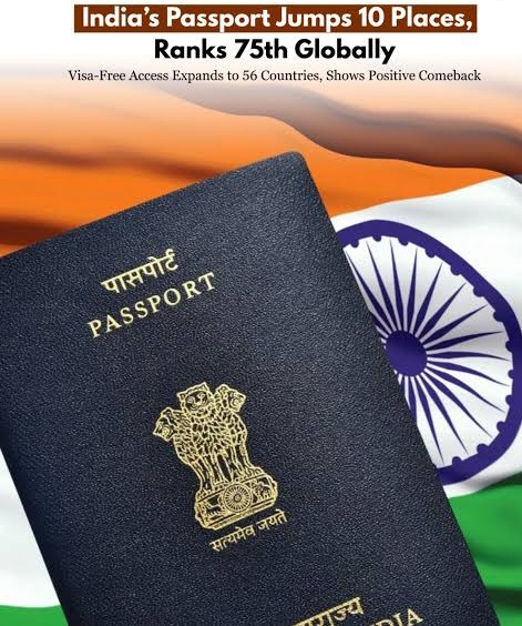 India’s passport has improved its global standing, moving up to the 75th position in the latest Henley Passport Index 2026. The updated ranking means Indian citizens now enjoy visa-free, visa-on-arrival, or e-visa access to 56 countries worldwide, marking a notable improvement from last year’s 85th rank.