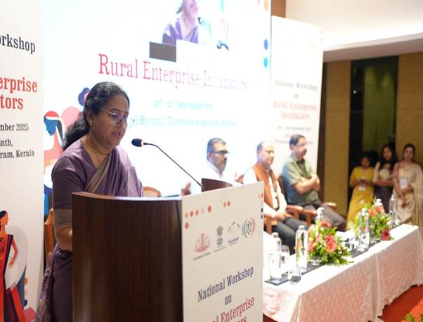 Kerala’s Minister for Local Self-Government, Shri M.B. Rajesh, underlined the state’s achievements in promoting women entrepreneurship through Kudumbashree. He expressed confidence that the workshop would act as a collaborative platform to design innovative solutions and accelerate enterprise incubation for rural women.