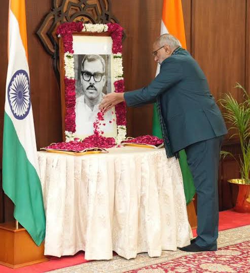 The floral tribute ceremony was held at Uparashtrapati Bhavan in the national capital, where the Vice President honoured the late leader’s enduring contribution to India’s democratic and social fabric.